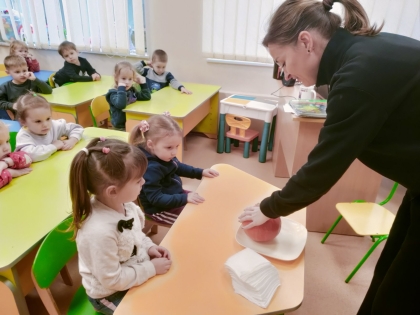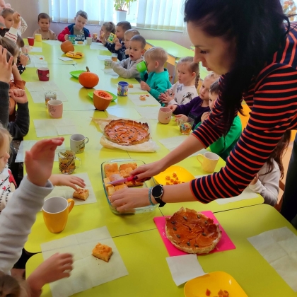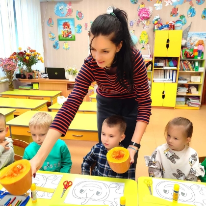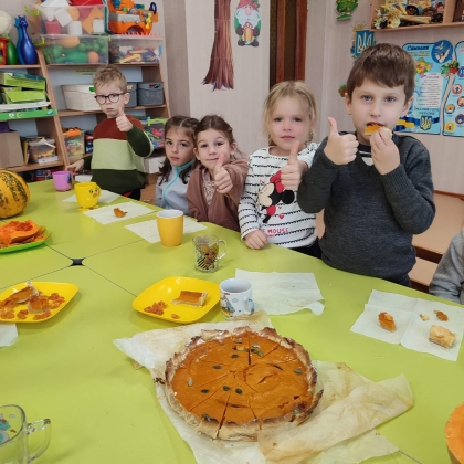 Маленькі вихованці стали учасниками інтегрованого заняття, в якому органічно поєдналися ознайомлення з природнім довкіллям, аплікація та рання профорієнтація. Діти дізналися чимало цікавих фактів про гарбуз, зробили рухомі поробки, погралися в цікаві ігри, скуштували смаколики з гарбуза та, навіть, спробували сам гарбуз на смак.