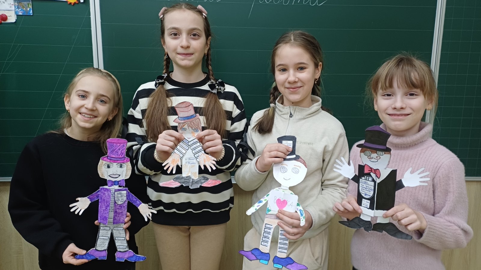 Дуже важливо мати мрію. Діти намалювали свої мрії, презентували їх одне одному, мали змогу дізнатися більше про своїх друзів. У процесі знайомства з твором здобувачі освіти створювали характеристики персонажів на великих ляльках, де в основному вибирали Віллі Вонку, пояснювали, чому саме цей персонаж обрали і мали змогу ближче познайомитися з персонажами своїх товаришів.