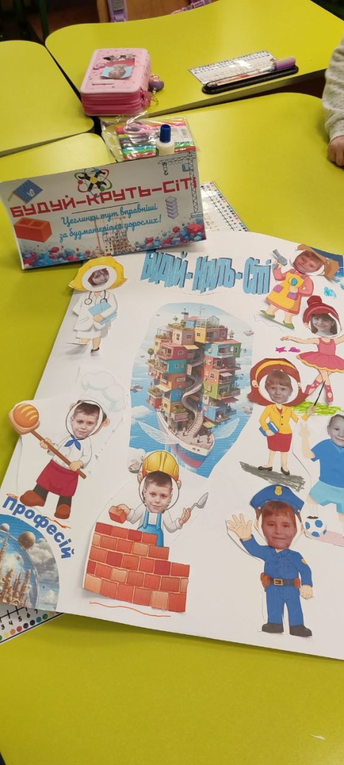 Цього дня наймолодші дослідники, учні 1-Б класу, з блиском в очах вирушили на Планету Професій. Метою заходу було не просто ознайомити дітей із різноманіттям професій, а дати їм можливість відчути себе в ролі фахівців, запалити інтерес до майбутнього та перших мрій про власний шлях у житті. Захід проходив у форматі захопливої гри. Діти подорожували районами Планети - «Умілі ручки», «Знайки», «Юні майстри» , із захопленням виконуючи завдання від їхніх «мешканців». Кожна команда проявила неймовірну креативність, створивши чотири унікальні міста зі своїми мерами: Технополіс, Будуй-Круть-Сіті, Смако-Нямбург та Рятівниче Королівство. Найемоційнішим моментом стало «вживання» дітей у професійні ролі. Учні наклеювали власні фото на фігурки професій і з радісним хвилюванням розміщували себе-професіоналів у відповідних локаціях.