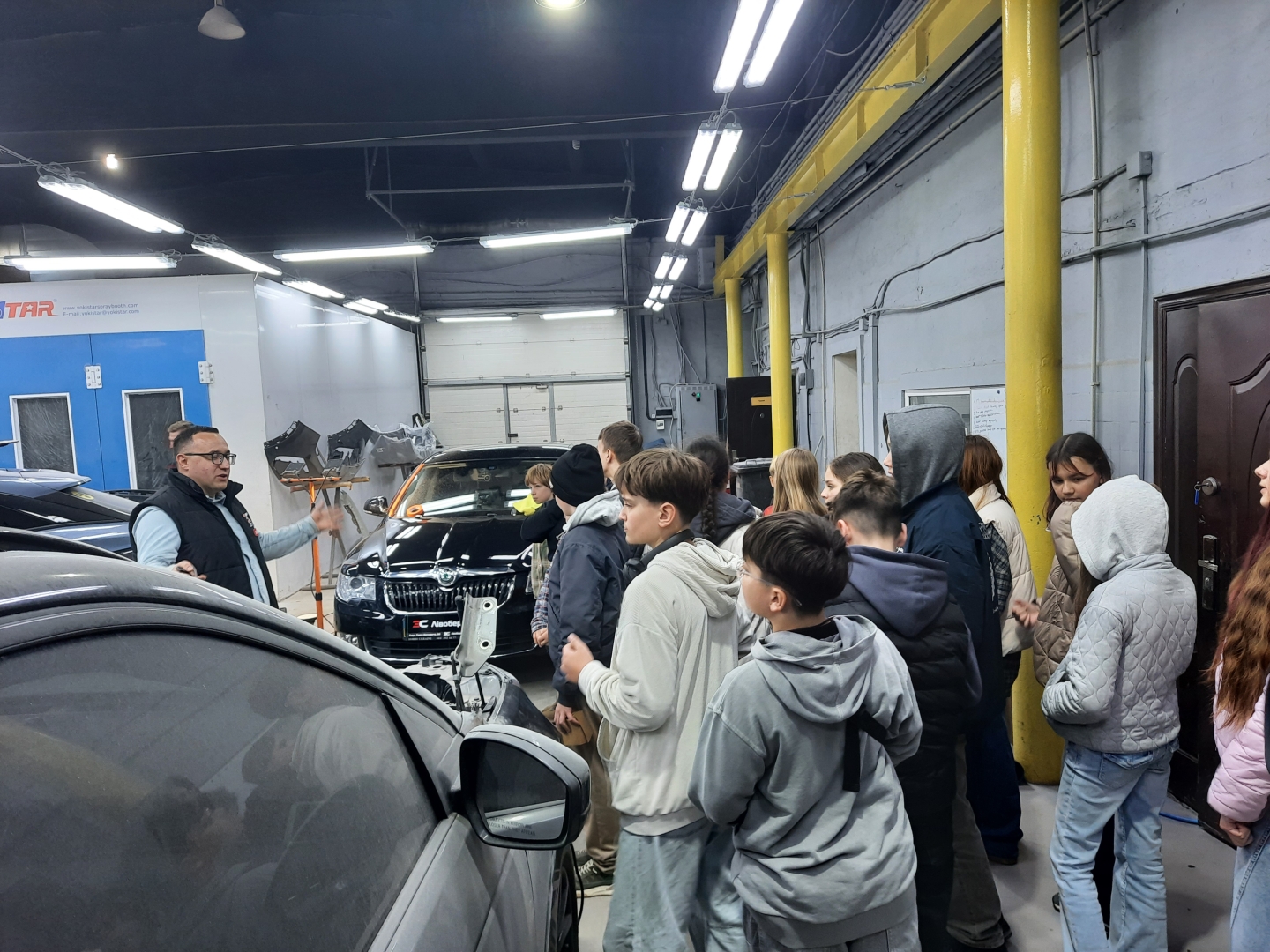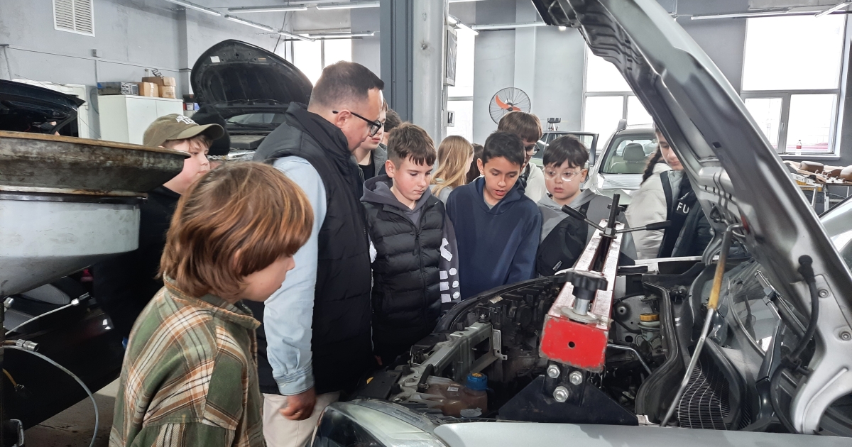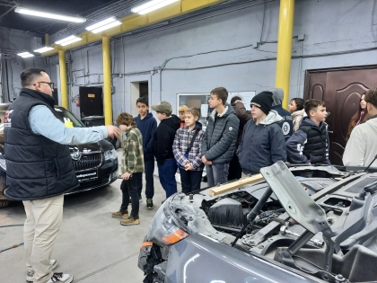 Організував та провів професіографічну екскурсію Андрій Падун, тато Анастасії Падун. Він ознайомив учнів із змістом професійної діяльності фахівців, зайнятих у сфері технічного обслуговування та ремонту автотранспорту, а саме: автомеханік, майстер з діагностики, електрик-діагност, слюсар з ремонту автомобілів, автомаляр, колорист. Діти побачили сучасне обладнанням: підйомниками, діагностичними стендами, комп’ютерною технікою для зчитування помилок електронних систем автомобіля. ове навчання та мають досвід роботи.