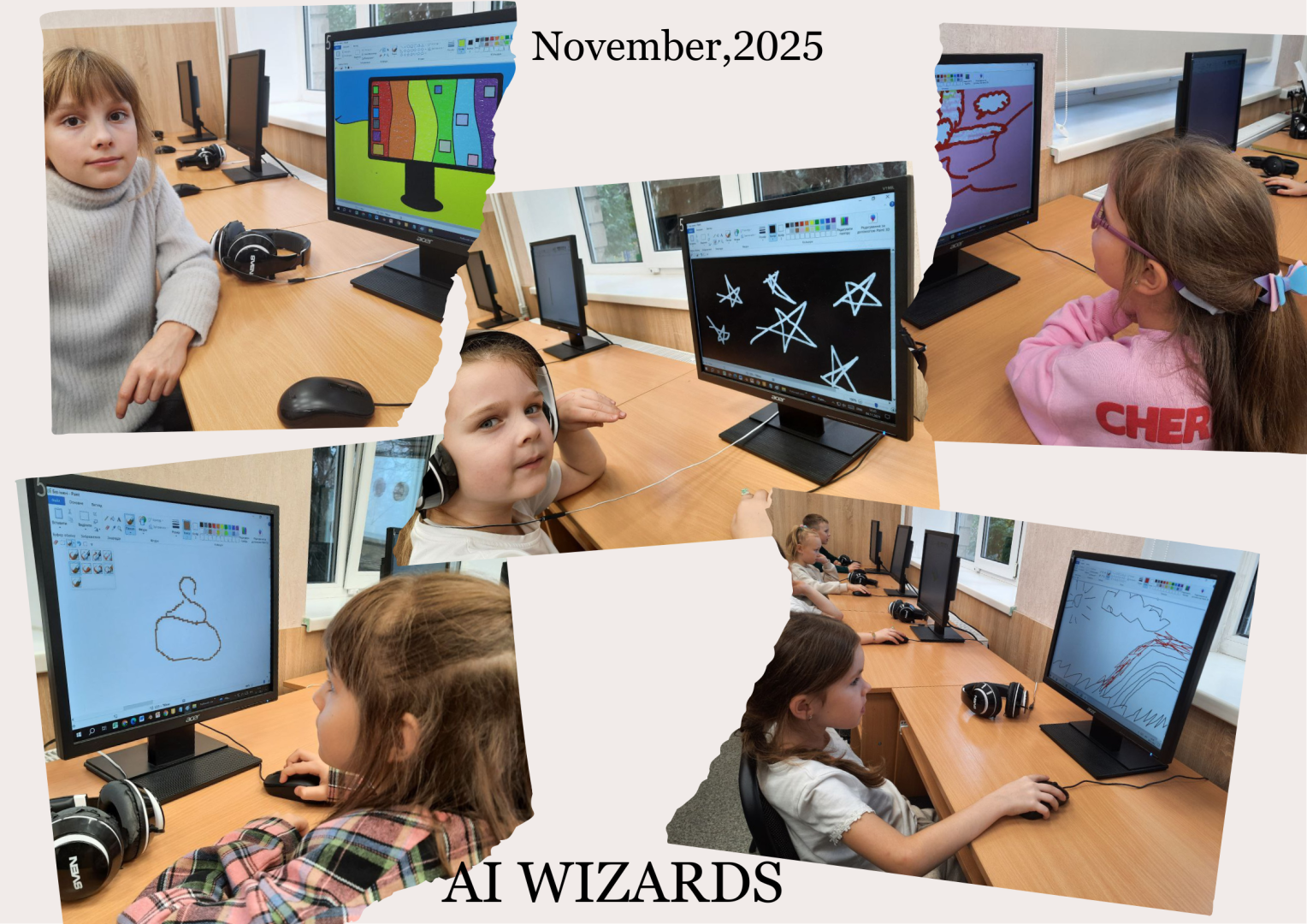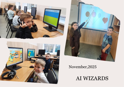 У рамках міжнародного проєкту «AI Wizards» у листопаді молодші школярі, які відвідують гурток «Інформаційна культура», знайомилися з графічними програмами. Діти створювали власні зображення, опановували основи цифрової творчості та вчилися відповідально користуватися сучасними інструментами.