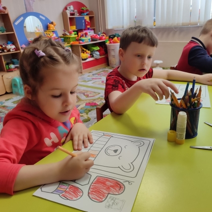 Малюки грали в гру «Скажи комплімент другові», де вчилися висловлювати приємні слова одне одному. Це створило радісну та дружню атмосферу в групі. Також діти виготовили яскраві валентинки у формі сердечок, прикрасили їх аплікаціями та подарували тим, кого люблять.