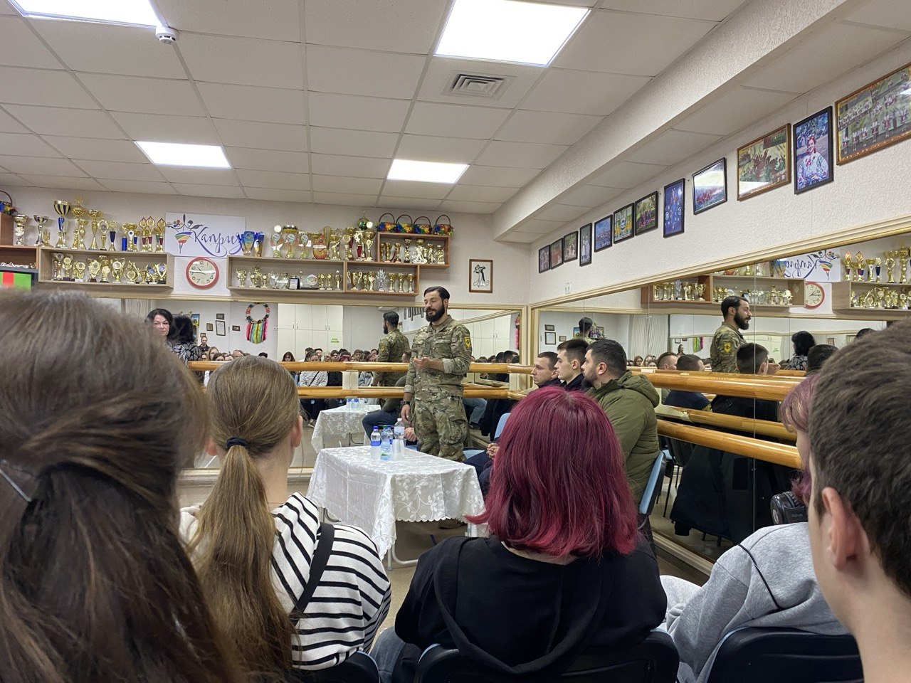 Урок розпочався з історичної довідки та перегляду документального фільму про службу та щоденні завдання військових сержантів. Після цього гості поділилися власними історіями, розповіли про особливості своєї роботи, виклики, які доводиться долати, та важливість згуртованості й стійкості.