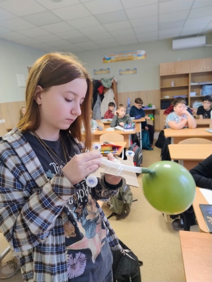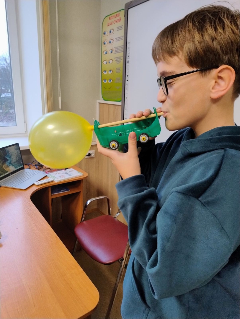 У класі розгорнулася справжня наукова лабораторія. Використовуючи підручні матеріали (повітряні кульки, коктейльні трубочки, нитки, затискачі тощо), ліцеїсти власноруч конструювали моделі реактивних двигунів.
