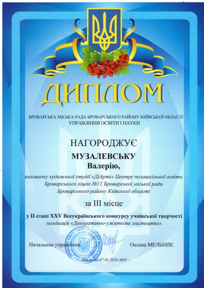 Вітаємо Валерію Музалевську, яка посіла ІІІ місце у номінації «Декоративно-ужиткове мистецтво» та Катерину Етель – ІІІ місце у номінації «Образотворче мистецтво»!