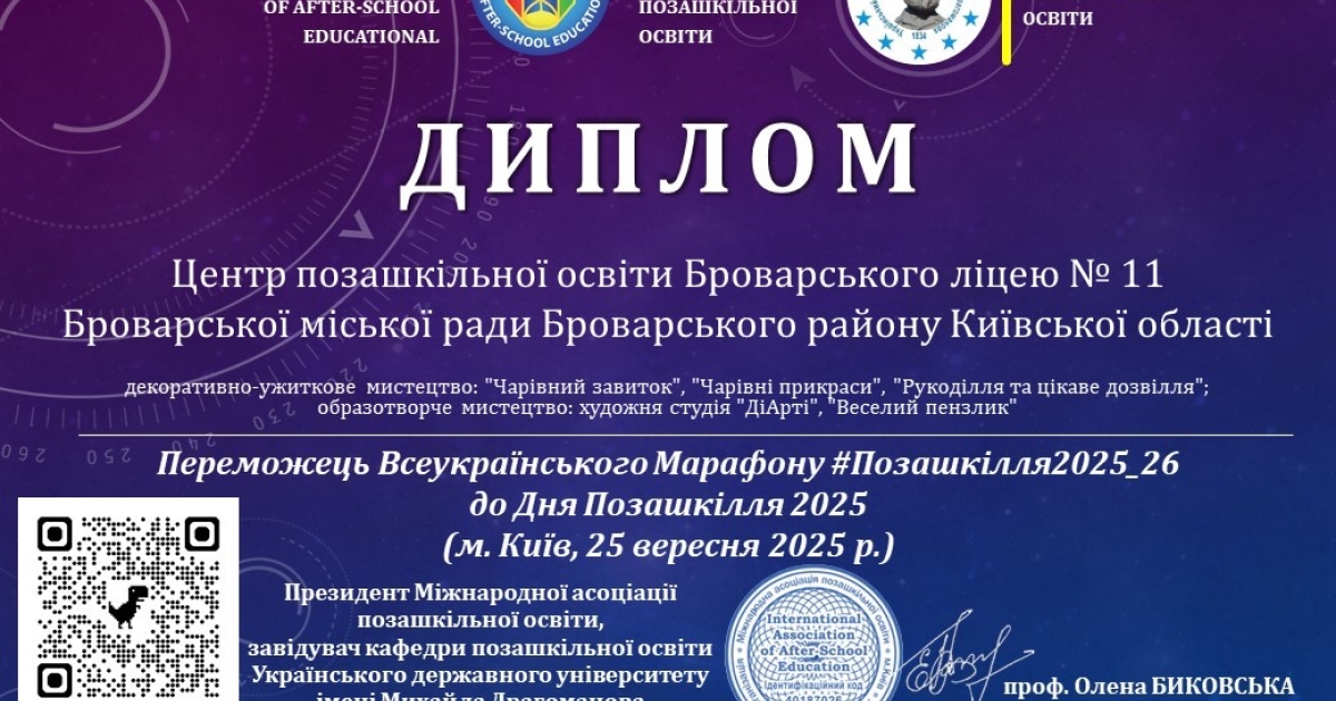 імені Михайла Драгоманова, вітаємо Центр позашкільної освіти Броварського ліцею № 11 з отриманням Диплома переможця!